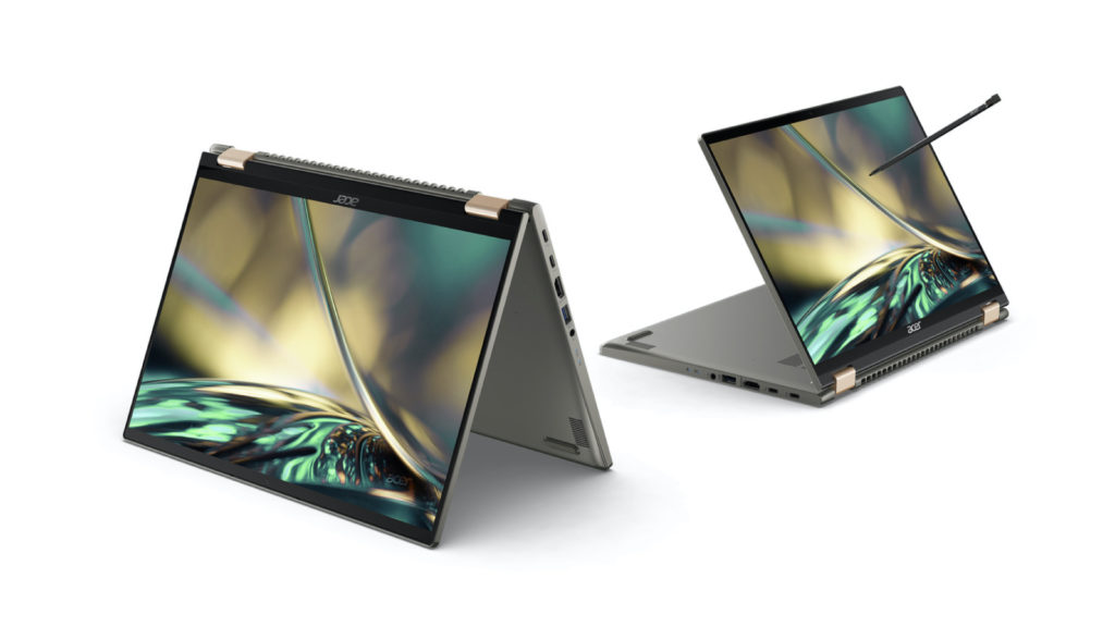 Le Spin 3 de 14 pouces (SP314-55/N), est quant à lui un ordinateur portable de 14 pouces avec une dalle FHD, fin et convertible, possédant un emplacement pour ranger son stylet Acer Active Stylus pour dessiner et écrire en toute mobilité. Il intègre des processeurs Intel Core de 12e génération avec carte graphique Intel Iris Xe et SSD PCIe, et peut être rechargé pour 4 heures d’utilisation en 30 minutes, offrant ainsi des performances et une productivité fiable pour les professionnels en déplacement. L’Acer Spin 3 comprend des bords fins avec un rapport écran/châssis de 86 %, et pivote à 360 degrés, ce qui permet de passer sans effort de la lecture à la prise de notes, ou pour permettre de partager son travail. L’ordinateur portable offre une connectivité rapide avec le Wi-Fi 6 et un double port USB Type-C avec Thunderbolt 4 pour assurer un transfert de données et une alimentation rapides. Le Spin 3 dispose d’une caméra HD avec la technologie TNR d’Acer et est livré avec Acer PurifedVoice et la technologie de réduction du bruit améliorée par IA.