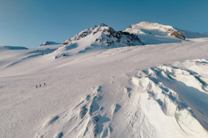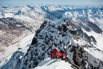 Le premier jour de ski, nous avons fait l’ascension du Grossglockner, le plus haut sommet de l’Autriche. C’est une course longue, 2 000 mètres de dénivelé positif, une dizaine d’heures d’efforts, et mixte, avec toute l’approche en ski de randonnée puis une longue arrête en rocher et neige.