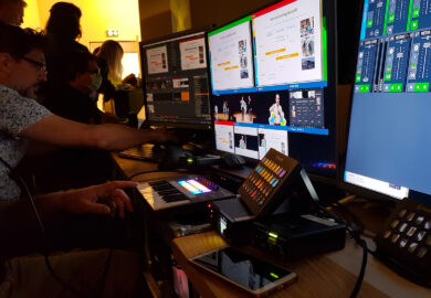 La machinerie ce sont les caméras, le son, l’éclairage, le mélangeur, la table de mixage, l’encodeur pour le streaming et la bande passante. L’humain se sont celles et ceux présents sur le plateau, mais aussi celles et ceux derrière les caméras et en régie. Le contenu, c’est le nerf de la guerre.
