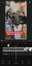 Il permet des opérations simples de clipping ou plus complexes de remontage des productions et de retouches du contenu. Il enrichit la promesse d’instantanéité de BeNarative. Le temps est réduit entre le moment de la captation, celui de la production et de la publication. L’outil de montage est complet : il gère les différents ratios d’image du 16/9e au 9/16e, permet la génération d’overlays vidéo, le placement de transitions, l’accélération de plans, l’ajout de filtres et de textes et l’enregistrement de voix off. Nous avons testé et pouvons intégrer les différents outils de transcription disponibles. La fonctionnalité de « Background removal » dédiée au format « snack news » permet de changer le fond d’écran derrière le présentateur.
