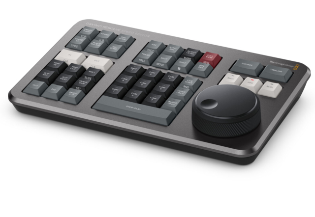 La surface de contrôle Speed Editor a été spécifiquement conçue pour la page Cut de DaVinci Resolve. Abordable et livrée avec la version Studio du logiciel, ses boutons mécaniques activent des fonctions adaptées au montage. Smart Insert, Ripple Overwrite, sélection de l’affichage des sources ou de la timeline dans le visualiseur ou des modes de déplacement (jog, shuttle et scroll), la surface est également pensée pour la réalisation de montages multicaméras en postproduction.