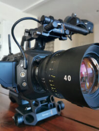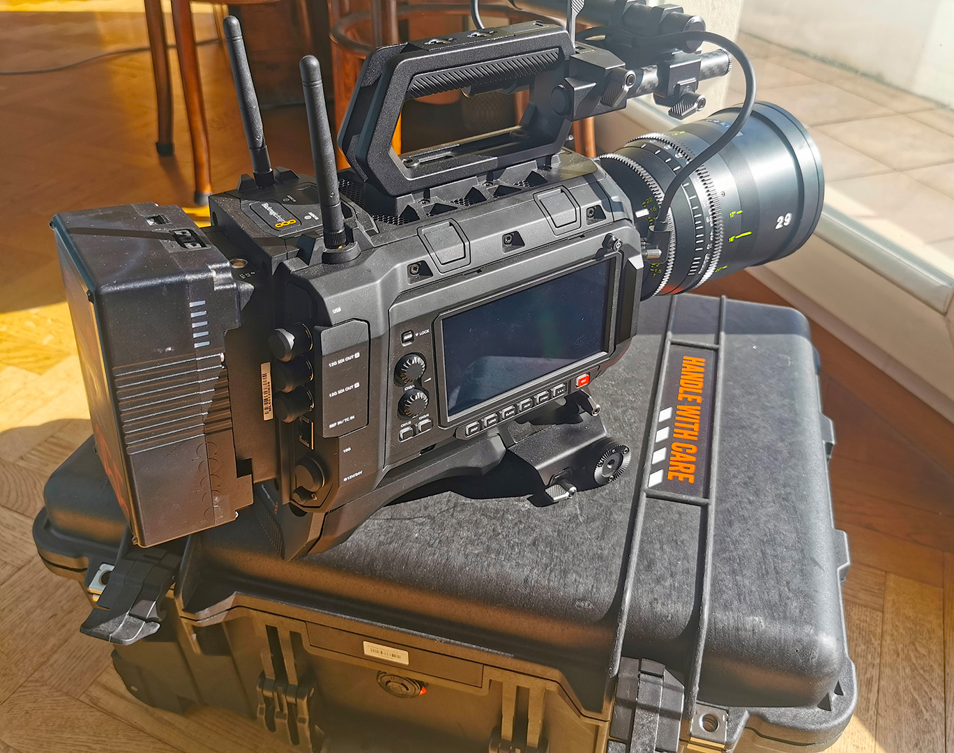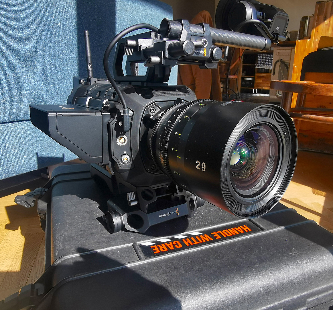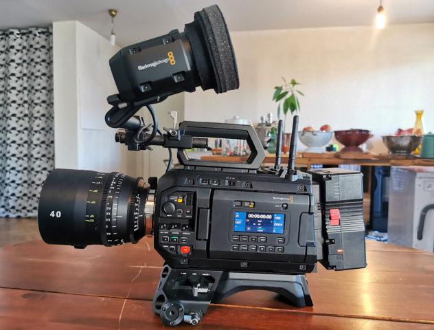 L’Ursa Cine 12K que nous avons testée était en configuration complète livrée en flight case avec le visualiseur OLED Ursa viewfinder et le support épaulière, bienvenu pour supporter le poids honorable de la caméra et de ses accessoires. Trois très belles optiques 29, 40 et 85 mm LF Tokina Vista en monture PL complétaient le kit.
