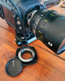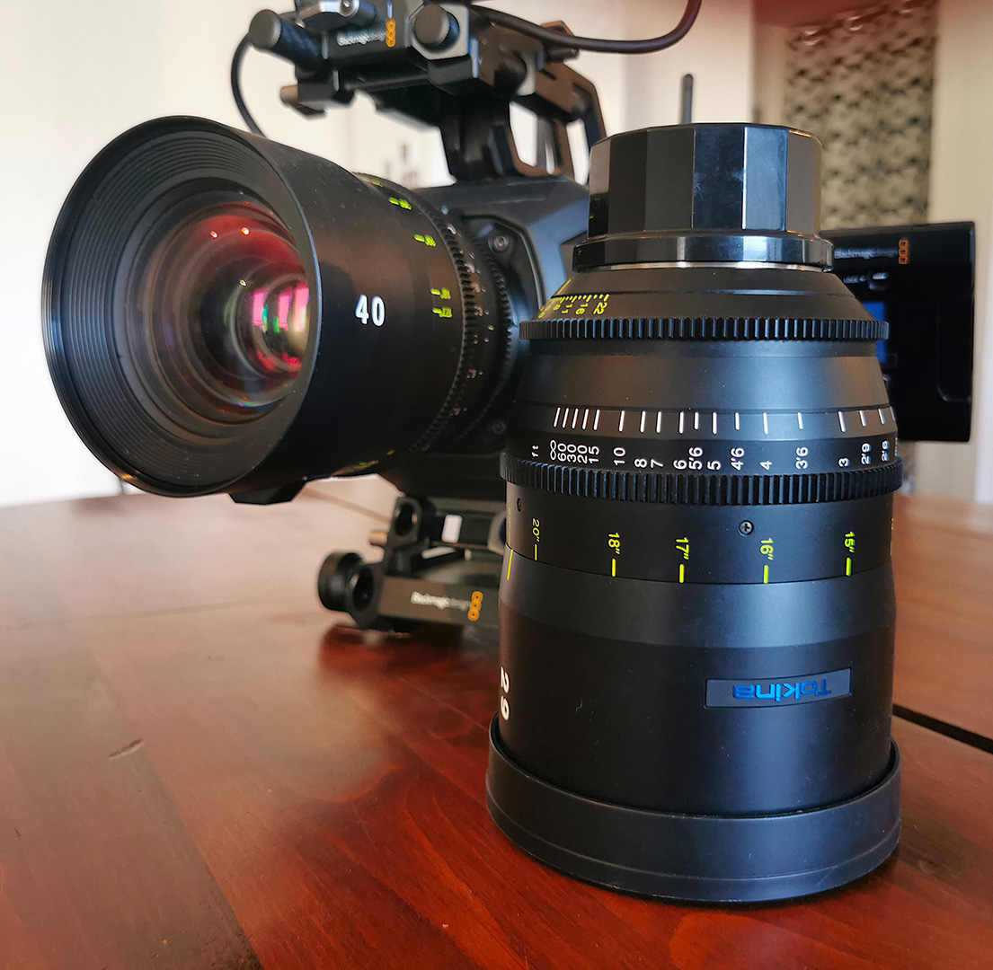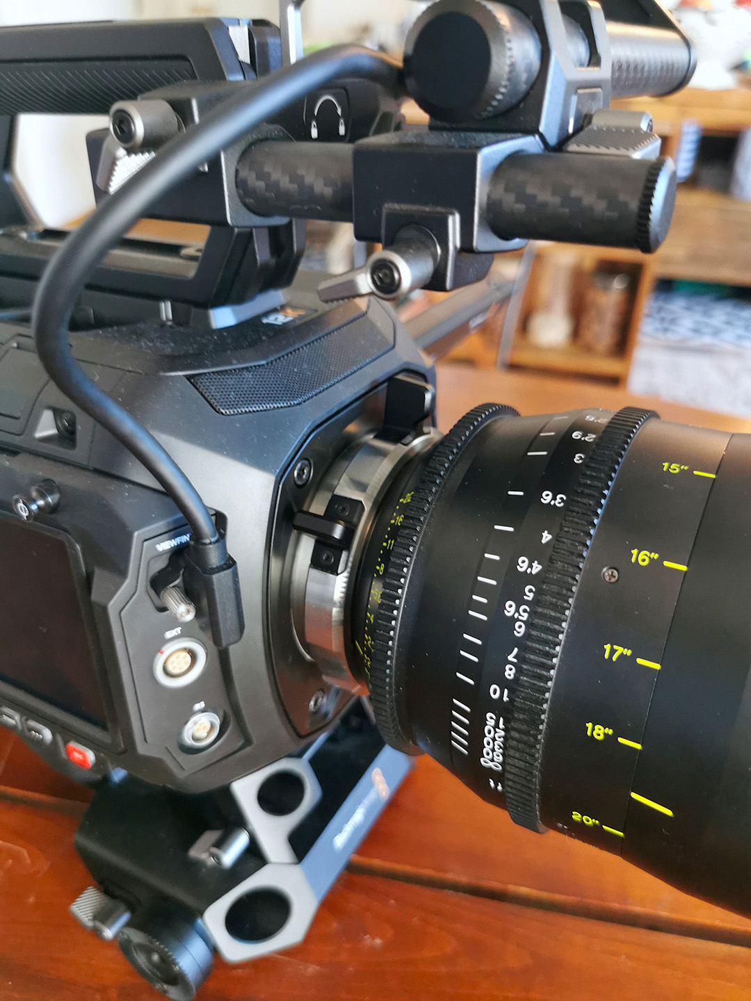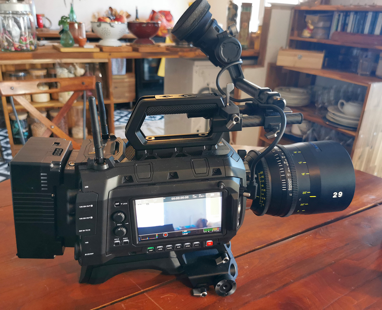 L’Ursa Cine 12K que nous avons testée était en configuration complète livrée en flight case avec le visualiseur OLED Ursa viewfinder et le support épaulière, bienvenu pour supporter le poids honorable de la caméra et de ses accessoires. Trois très belles optiques 29, 40 et 85 mm LF Tokina Vista en monture PL complétaient le kit.