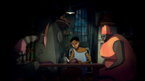 De même, Voyage à Teulada dirigé par Nicola Contini, Pascal Chevé et Florent Mounier et porté par le studio corse Isla Production réservait à Cartoon Movie la primeur de nouvelles scènes pour raconter cet exode imposé (l’annexion par l’OTAN d’un port sarde). Pour donner une portée universelle au récit, qui mêle deux histoires d’immigration (celle d’une vieille femme sarde qui rêve de revenir chez elle et d’une jeune Syrienne), la production, qui a réuni 44 % du budget en France (sur 4,6 millions d’euros), a opté pour l’animation 2D digitale pour les personnages, l’animation 2D cut out et la 3D (véhicules, etc.). « Le principal défi a été de trouver la bonne chaîne de production afin de préserver au plus près le travail du directeur artistique », note Florent Mounier qui assure la production exécutive.