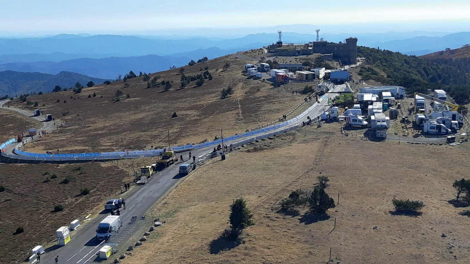 Au Puy Mary, le dispositif a dû s’adapter à une contrainte majeure : l’impossibilité de stationner l’ensemble des moyens techniques sur le lieu d’arrivée. Ainsi, une partie du TV compound avait pris place au sommet, une autre partie dans la vallée de Dienne, à seize kilomètres de là. « Dans ce genre de situation, nous sommes obligés d’activer deux camions avec deux liens Giga Ethernet : un au sommet et un autre sur la seconde zone technique », précise Henri Terreaux. « Le choix s’est posé de réaliser un fibrage définitif depuis les vallées de Dienne et Mandaille, mais il n’a pas été retenu. »