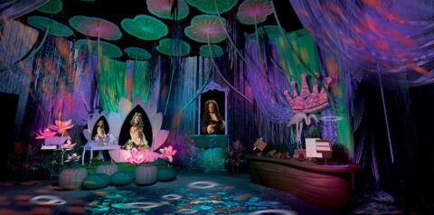 Programmée pour la rentrée 2025, l’exposition « Fables immersives » offre une plongée dans l’univers des Fables de La Fontaine. Ici la future Salle de la Grenouille où l’on reconnaît Marie Bénoliel (Alias Marie S’infiltre) dans le rôle de la Grenouille et Laurent Stocker dans le rôle de La Fontaine. © Cités Immersives