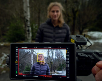Pour bénéficier du meilleur confort d’utilisation, on peut fixer le télémètre laser LiDAR au-dessus de l’objectif et ainsi profiter d’une excellente mise au point automatique, pour peu qu’on utilise un objectif compatible. Sur les objectifs manuels il faut rajouter le moteur Focus DJI. En mode autofocus avec reconnaissance des humains, le Ronin 4D repère le sujet et le suit, non seulement pour la mise au point mais aussi avec la nacelle si on valide l’Active track Pro. En effet, grâce à la puissance de calcul de la puce CineCore 3.0 et à la technologie de deep learning, l’appareil a appris à identifier les sujets, même en mouvement. Sur le moniteur un carré propose un sujet, et si on le valide la caméra fait en sorte de le garder dans le cadre. L’opérateur n’a plus qu’à se concentrer sur ses propres déplacements, l’appareil fait le reste.