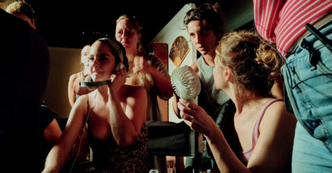 Nous nous sommes beaucoup inspirés de l’univers de Pedro Almodóvar pour la première partie du film, qui se déroule dans l’appartement des trois protagonistes. L’usage intense des couleurs – avec une dominance de jaune et de rouge – ainsi que la profusion de motifs évoquent clairement l’esthétique du réalisateur espagnol. À l’inverse, l’appartement du voisin est plongé dans une ambiance froide, marquée par des néons et des tons glaciaux. Ici, nous avons puisé dans des références comme In the Mood for Love ou Orange mécanique. Le film s’inspire également de Fenêtre sur cour pour sa structure narrative et visuelle… Le cahier des charges était donc ambitieux et pour les décors, il nous fallait deux appartements l’un en face de l’autre. En plus, celui du voisin devait absolument être un duplex pour une raison spécifique au scénario. Un tel environnement n’existait pas au complet en décor naturel : nous avons trouvé l’appartement des filles et le bâtiment du voisin d’en face, mais le décor de l’appartement du voisin a été reconstruit en studio pour répondre à nos exigences.