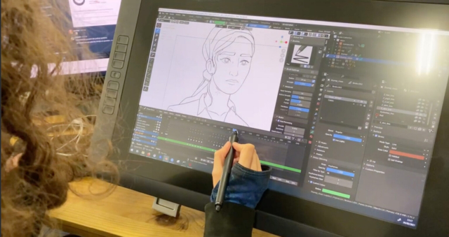 Étonnamment, cette approche résolument technologique et évolutive ne s’accompagne pas d’une énorme armada technique. Si une mise à jour est envisagée pour l’an prochain, le parc d’une vingtaine d’ordinateurs est pour le moment âgé de trois à huit ans. « Comme on est sur de la 2D, il n’y a pas besoin de ressources massives », rappelle Flavio Perez. Pour les machines « récentes », le choix n’a pas été de se porter sur des cartes graphiques professionnelles, type Quadro, qui ne « profitent pas vraiment » à Blender. Mais plutôt sur des outils de « gamer » : Geforce RTX 3080, 3090. Côté processeurs, beaucoup tournent avec des AMD Ryzen, souvent avec 64 gigas de RAM. Historiquement, Linux était privilégié, mais des switchs vers Windows ont été développés avec des partenaires IT, pour accéder à certains outils, type After Effects. Même si, progressivement, des logiciels comme Photoshop sont supplantés par Krita au sein de l’équipe.