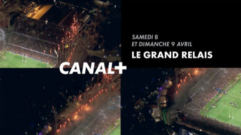 Packshot de fin de bande-annonce pour un « Grand Relais », plus de trente heures de retransmissions et magazines sportifs au cours d’un week-end, diffusé sur Canal+. © DR