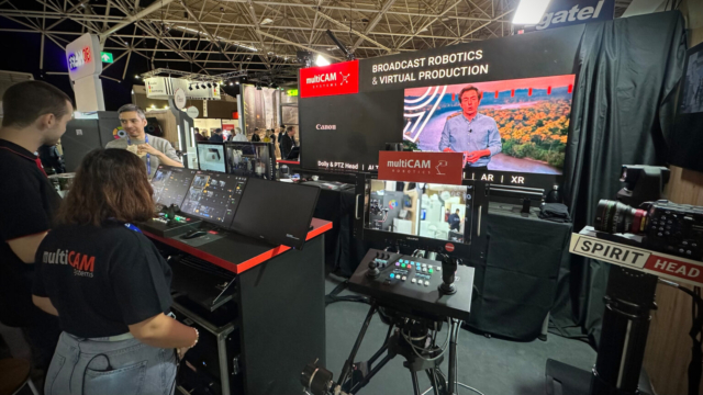 Sur IBC, le constructeur français démontrait le contrôle d’une tête gyrostabilisée montée sur un système DJI Ronin et un robot Jib, l’ensemble circulant sur un rail de travelling. Multicam présentait aussi une nouvelle tête robotisée : la Spirit head v2. Dédiée au broadcast et à la télévision, cette tête PTZ télécommandée a été développée par multiCAM Robotics (ex-société française Polyscope). Son nouveau moteur assure des mouvements d’une grande précision ce qui représente un atout incontournable pour une exploitation sur les plateaux XR.