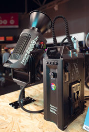 Aputure présente sur son stand son nouveau projecteur 600C pro, une source ponctuelle « full color » de 600 W (quelle que soit la couleur), résistant à la poussière et aux éclaboussures, et destiné au marché de la production vidéo. Une série d’accessoires est déjà en préparation. Parmi les futurs produits annoncés par Aputure mais déjà en démo sur le stand : une mise à jour du Pocket Light qui passe de 7 W à 15 W et disposera de deux accessoires de diffusion permettant donc trois niveaux de diffusions en les combinant, ainsi qu’une grille en nid d’abeille.
