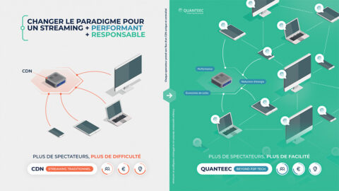 Créée en 2021, la start-up Quanteec est spécialisée dans la diffusion de vidéos en ligne. Elle se distingue des autres acteurs du marché grâce à son approche durable du streaming. En effet, via leurs process inspirés de la décentralisation promue par le Web 3, les solutions Quanteec transforment chaque spectateur en rediffuseur et aident les clients à économiser jusqu’à 50 % d’énergie. Cette technologie a déjà été adoptée par plusieurs acteurs de la diffusion vidéo, comme Orange ou France Télévisions, et est en cours d’implantation aux États-Unis et en Amérique latine.