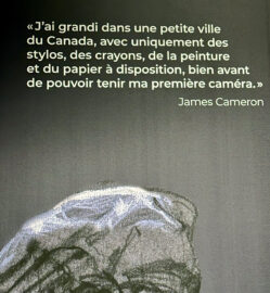 James Cameron : Je me suis rendu compte qu’il s’agissait en fait d’une biographie, d’un retour sur les idées que j’avais quand j’étais enfant et sur l’évolution de ces idées au fil du temps, puis en tant que jeune cinéaste, et enfin jusqu’à aujourd’hui. Je pense que l’une des choses que Kim a réussi à créer dans sa supervision du livre et de l’exposition, c’est l’évolution des idées et de la passion qui m’anime. Je ne me considère pas comme un grand artiste. Je pense que la valeur de l’art dans l’exposition est de voir l’évolution d’un cinéaste en tant qu’artiste parce qu’en fin de compte, mon but était de peindre avec la lumière sur le grand écran. J’essayais de m’exprimer et d’aller de l’avant.
