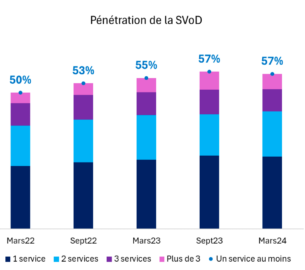 Du côté de l’offre de contenus, le contexte déjà hyperconcurrentiel a vu l’arrivée de TF1 Plus en janvier, de Prime Vidéo en avril, de M6+ et TV+ en mai et attend la plateforme Max de Warner pour le 11 Juin.. Cette offre s’étoffe dans un contexte où la pénétration des services de streaming payants semble atteindre un plateau, particulièrement chez les moins de 35 ans, dont 67% sont abonnés à au moins un service, contre 43% pour les plus de 50 ans. Cette stabilité dans les abonnements s’accompagne d’une baisse significative du partage de comptes, notamment chez Netflix, où le partage de codes est passé de 20% début 2023 à moins de 9% en mars 2024… La fête est terminée pour les plateformes !