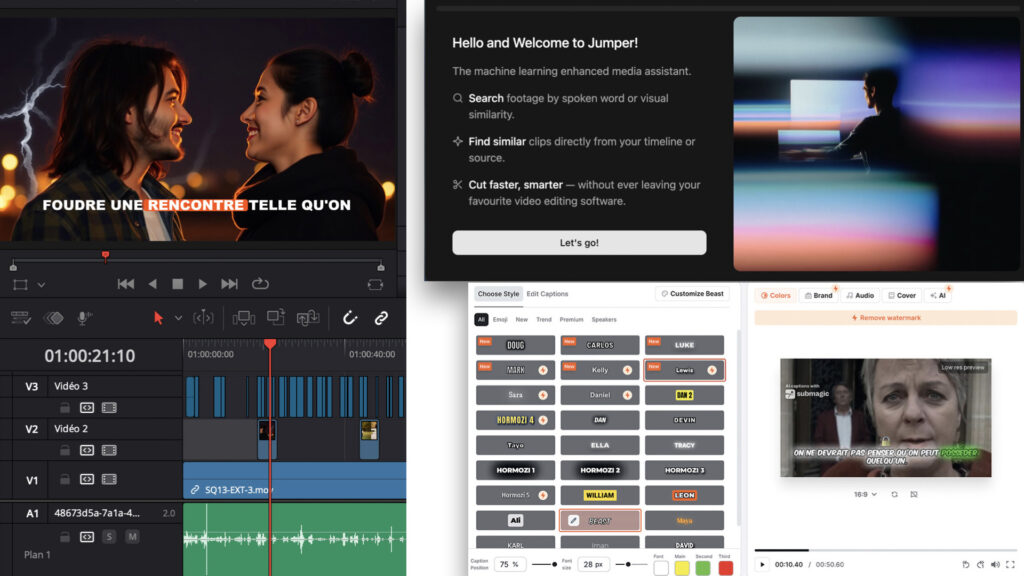 Parallèlement à ces technologies largement popularisées à la sortie de Midjourney, Sora ou Google Veo 3, de nouveaux outils sont récemment apparus pour assister les monteurs et accélérer certaines tâches quotidiennes chronophages ou fastidieuses.