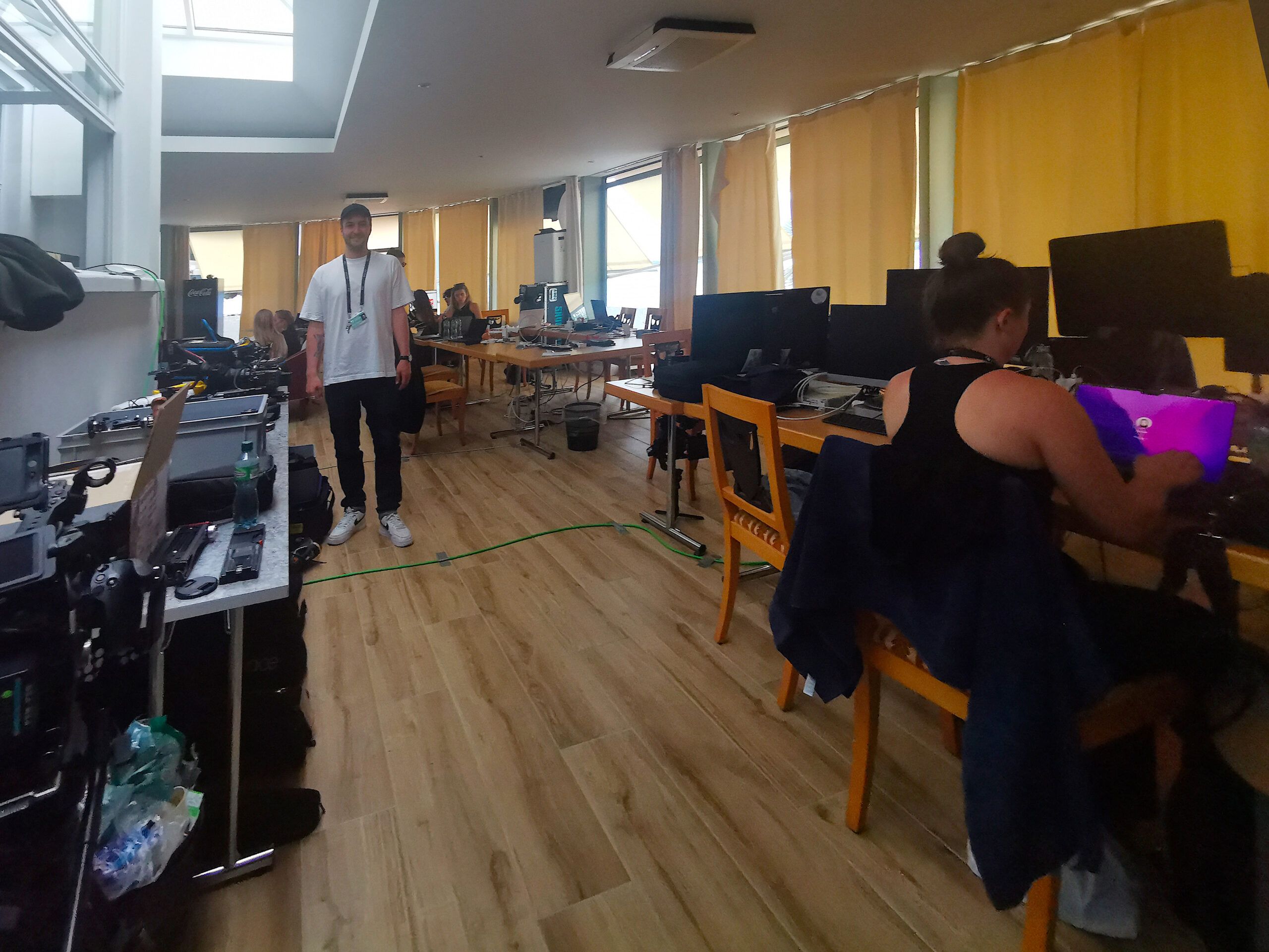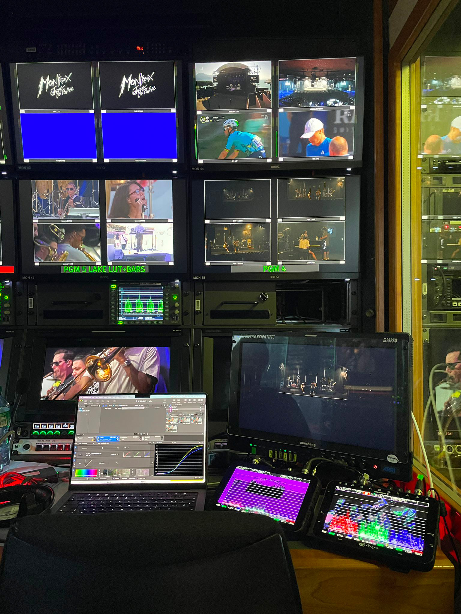 Cette année sera un peu différente, mais nous nous déployons habituellement sur trois lieux avec un local pour la Montreux Jazz TV qui fonctionne à flux tendu avec tout leur matériel et les postes de montage, la zone de production regroupe les cars et est le point de départ des livestreams et de la diffusion pour Arte et les autres médias. On y trouve l’équipe de production audiovisuelle avec tous les caméramans et les techniciens. Nous y faisons nos briefings quotidiens pour les concerts du soir. Le dernier lieu est le studio vidéo, d’où sont gérés tous les livestream, le départ vers les différents points de diffusion sur le festival, l’affichage sur les écrans installés de chaque côté de la scène des salles payantes et l’acquisition des archives.