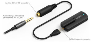Les PicoMic sont ridiculement petits. Si on les compare aux concurrents de chez Røde, les Wireless Go qui font référence, ils ne font que 43 mm x 17 mm x 7 mm et ne pèsent que 8 grammes chacun. La partie la plus imposante est celle qui contient l’électronique et la batterie. La version 2 Pro de ces PicoMic permet de brancher un micro filaire et de se passer des services des micros intégrés qui sont néanmoins très bons. Via un petit adaptateur vous avez une entrée mini-jack.