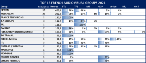 Avec près de 410 heures de programmes retenues pour 2021 au titre des obligations d’investissement en production audiovisuelles des chaînes, Newen affiche un volume de production – hors flux – pour le compte des chaînes françaises très sensiblement supérieur à celui de ses concurrents : la filiale du groupe TF1 pesait presqu’autant l’an dernier que ses trois suivants réunis (Mediawan, France Télévisions, via France Télévisions Studio, et JLA Groupe). Les commandes se sont réparties sur dix des labels du groupe (17 Juin Média, Barjac Production, Boxeur 7, CAPA, Telecip, Telfrance…).