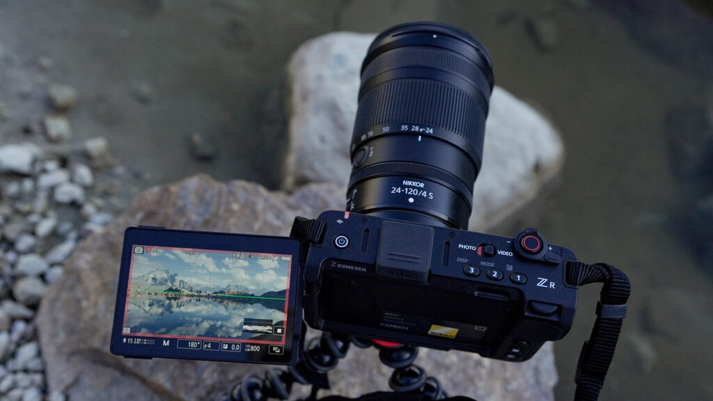 À la prise en main, on ressent tout de suite qu’il s’agit d’une caméra et non d’un appareil photo (ah, ce français qui complique tout…). L’ergonomie est très minimaliste, avec peu de boutons mais un grand écran tactile de 4 pouces très lumineux (1 000 cd/m2) à la gamme de couleurs DCI-P3. L’absence de viseur peut gêner les opérateurs qui évoluent dans des zones de forte luminosité, mais beaucoup de vidéastes ont pris l’habitude de cadrer sur un écran. Tout l’avant est occupé par la monture, bien entendu une Z, pour profiter de toute la gamme des optiques Nikkor. Ceci dit, comme celle-ci est très grande et que le tirage optique est court, il est facile d’adapter des objectifs d’autres fabricants.