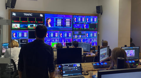 L’interface graphique est intuitive. Il y a une fenêtre vidéo principale et en dessous un carrousel, avec des vignettes qui se synchronisent avec le sujet de l’émission ou le profil d’un intervenant. Il est ainsi possible de faire apparaître un site Web, un réseau social, une vidéo. Il y a de l’interactivité directement dans l’image principale en insérant un compte Twitter ou LinkedIn sur une personne qui intervient.