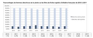 Sur les 162 films éligibles aux César 2022, ce sont toujours et seulement 13,2% de femmes qu’on retrouve à la photographie sur des fictions, et 17,9% pour le documentaire. Si 48% des documentaires en lice sont réalisés par des femmes, les chiffrent tombent à 30% pour les courts métrages et environ 25% pour les longs métrages de fiction. Ces données mettent en évidence que si la part de femmes à la caméra est généralement en légère hausse, les films à gros budget restent majoritairement faits par des hommes. En comparant les statistiques à dix ans d’intervalle, il en ressort une situation qui stagne, un plafond de verre qui perdure : « plus le budget des films augmente, plus le pourcentage de femmes à l’image diminue. Ainsi sur les films avec des devis dépassant les 5 millions d’euros (devis moyen pour les films avec des hommes à la direction de la photo) il n’y a plus que 4,34% de femmes directrices de la photographie. »