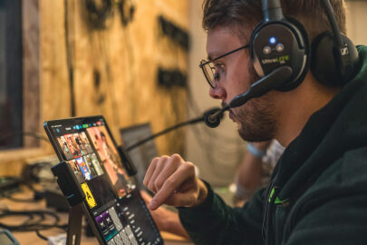 Une fois le conducteur disponible, nous préparons tous les éléments, les synthés, les slides et les vidéos. Le repérage est évidemment indispensable, notamment au niveau du réseau. Nous connectons les iPhone en filaire ou utilisons des solutions 4G/5G. Au début pour le wi-fi j’utilisais des routeurs Google ; j’ai progressivement bonifié la solution en achetant des bornes wi-fi 6E Netgear. Lorsqu’on ne veut pas de latence, on peut mettre les téléphones sur un réseau câblé en RJ45. Je l’ai fait pour des prestations sportives. L’application switcher propose une option wi-fi renforcée qui décale la transmission d’une à quelques secondes pour sécuriser le rapatriement des flux des caméras en direct. Cela s’avère dans la pratique être également un petit plus pour la réalisation puisque le retard me permet de savoir en avance qui va parler. Je peux commuter avant que l’interlocuteur ne prenne la parole et affiner la fluidité de ma réalisation.
