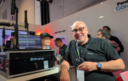 Sur le stand BOB-Boîte à Outils Broadcast, son directeur technique Cyril Mazouer présentait l’activité de la société, avec parmi les gros projets actuels l’émission quotidienne 28 minutes pour Arte, pour laquelle BOB a construit une régie et réalise la prestation des moyens techniques depuis la rentrée.