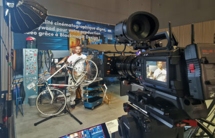 Du côté de la captation, la Pyxis 6K et l’Ursa Cine 12K étaient en démonstration autour de la reconstitution d’un atelier de réparation de vélo. La Pyxis est équipée du même capteur que la Cinema Camera 6K dans un boîtier dont la forme et les grandes possibilités d’accessoirisation étaient attendues par de nombreux utilisateurs.