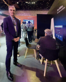 Autre nouveauté : l’écran transparent LED « holographique » de InVisia montré pour la première fois en Europe et qui sera lancé officiellement à l’ISE 2026. Ses LED, disposés sur un maillage fin, intègrent leur propre électronique. Le maillage transmet l’alimentation aux LED et donne une transparence de 80 %. Des bandes juxtaposables de 25 cm de large composent les panneaux qui peuvent être utilisés en mode suspendu, en mode totem ou pour aussi habiller des fenêtres. « Une révolution visuelle » selon Paul Morris qui souligne que le panneau de 512 x 640 pixels donne une sensation de Full HD.
