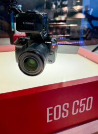 Sur son stand, Canon présentait un ensemble de produits vidéos et de solutions de captation automatisée avec des caméras tourelles. La vedette, la C50, trônait sur un podium rouge. Ce boîtier extrêmement compact, équipé d’un capteur plein format permet de filmer en 7K. Ses deux slots pour cartes SD et CF offrent la possibilité d’enregistrer simultanément en format horizontal et vertical. Dotée d’un excellent autofocus et de deux ports XLR intégrés dans la poignée, la caméra propose également un mode photo permettant de capturer des images RAW de 32 Mpx avec une rafale à 40 images par seconde. Cette caméra est donc idéale pour tous types de tournage.