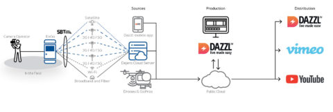 Dazzl a utilisé un émetteur mobile Dejero EnGo pour transmettre un signal vidéo à faible latence par l’intermédiaire d’un serveur Cloud Dejero, grâce à la technologie brevetée « Smart Blending » de l’entreprise : il s’agit de regrouper différents réseaux, potentiellement instables, afin d’offrir une unique connexion virtuelle fiable.