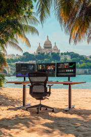 À La Plage Studio propose les outils référents sur le marché en évitant les grains de sable, avec du montage image Avid Media Composer Mac, écrans 65 pouces Oled, stockage centralisé Avid Nexis, étalonnage Da Vinci Resolve, montage son Avid Pro Tools Mac, Mixage console Avid S6, écoute JBL (7.1/Atmos). Mais la société s’adapte aussi aux variantes, comme le montage sur Adobe Premiere Pro, Da Vinci Resolve…