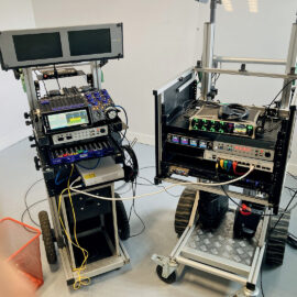 La roulante Maximus était installée à mi-parcours avec une première paire d’antennes, tandis que le système RF over Fiber et la seconde paire d’antennes étaient positionnés près du point d’arrivée. Un rack Wisycom MRK16 contrôlait les différentes zones et garantissait une réception optimale des micros HF.