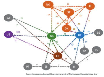 En Europe, quatre pôles de coproductions ont émergé au fil des années ; ainsi en 2022, la Scandinavie, le Royaume-Uni, la France et l’Allemagne sont les principaux centres de coproduction européens. En France, les principaux partenaires pour des coproductions sont le Royaume-Uni, l’Allemagne et, effet induis de la présence des streamers, les États-Unis avec 21 coproductions identifiées pour 2022. Autre preuve de la montée en puissance des streamers, le nombre de coproductions anglo-américaines qui atteint 100 fictions en 2022.