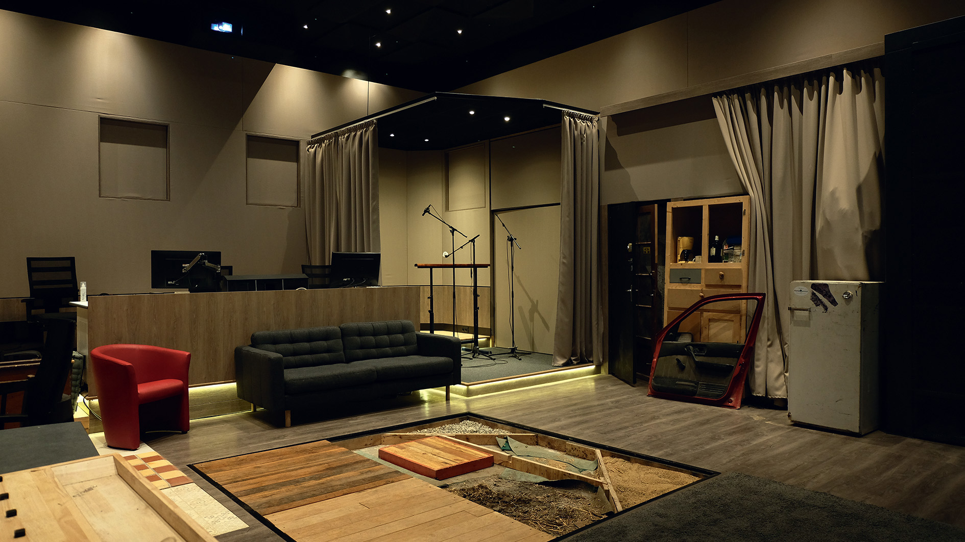 Encore une fois, je travaille beaucoup avec Jean-Marc Vernaudon, avec qui on sait où on va, et les retours sont excellents, y compris sur le bruitage et la postsynchro. L’audi mesure 80 m2, avec quelque 5 m de hauteur, ce qui est assez confortable. On y a mis ce qu’il fallait : différents sols, fenêtres, portes, plusieurs points d’eau, une cabane modulable pour la postsynchro afin d’avoir un endroit un peu plus mat à l’intérieur du volume… Nous avons consulté les bruiteurs et les directeurs de plateau pour affiner l’audi au fur et à mesure. Aujourd’hui, les utilisateurs sont très contents de l’outil, ils nous ramènent même des affaires !