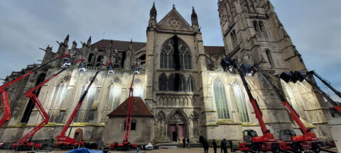 « Lors des repérages de la cathédrale de Meaux, avec un tournage prévu d’une semaine, j’ai été impressionné par les nombreuses ouvertures de lumière. La face exposée sud avec le soleil qui change tout le temps allait poser des problèmes. Je n’ai pas eu pas d’autre choix que d’occulter toute la face sud du monument, et éclairer avec douze HMI 18 kW montés sur nacelles la face nord, afin d’obtenir une lumière constante. Il a fallu trois semaines de prélight pour bornioler la face sud et monter les douze nacelles avec autant de HMI 18 kW côté nord. La seule scène que je ne pouvais pas éclairer était la scène de nuit du haut de la tour de La Rochelle où on devait voir la mer à l’horizon avec des bateaux. La tour a en fait été reconstituée en studio sur fond vert tout autour. Olivier Cauwet a travaillé l’incrustation de la mer et des bateaux et j’ai éclairé cette scène en nuit américaine », détaille Nicolas Bolduc qui assume ses choix et propositions artistiques, quitte à fâcher les puristes !