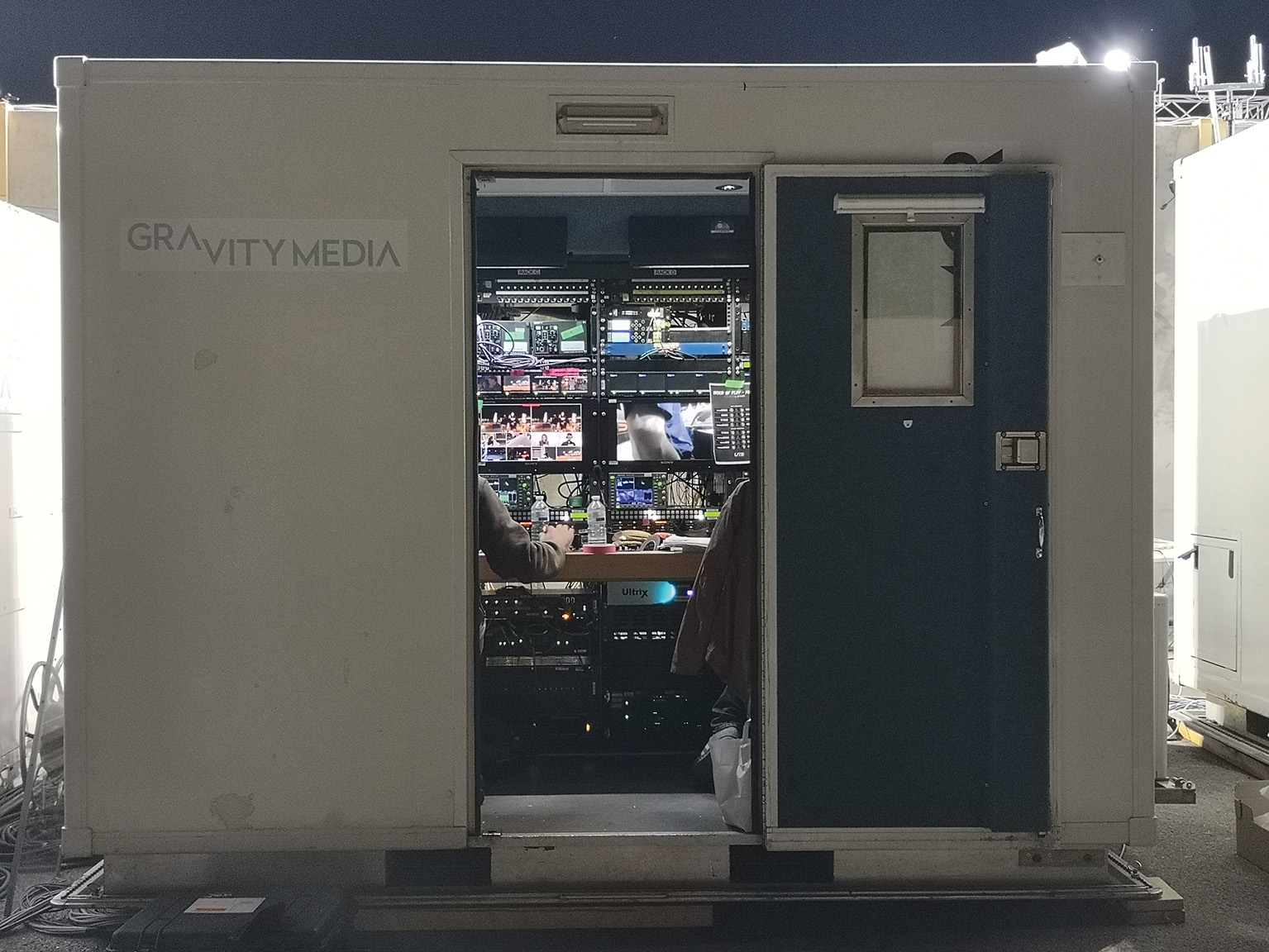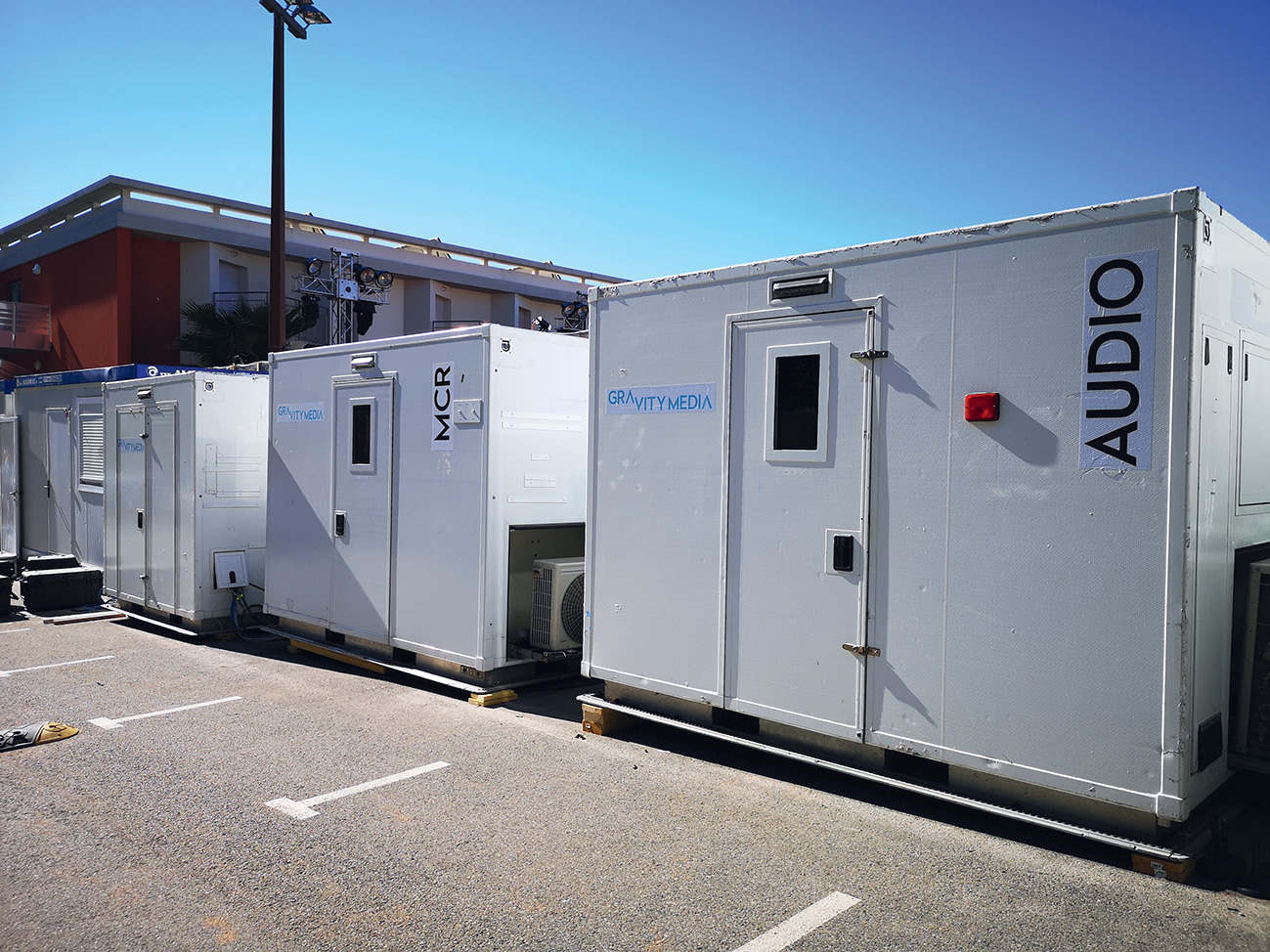 Le matériel a été transporté vers Biot dans des Pods de production spécialement créées par Gravity Media : des unités de production mobiles ultra-performantes et aisément déployables qui sont interconnectées et préintégrées pour faciliter le travail de câblage. Ces Pods comprennent des unités audio, de production et nodal, installées dans des conteneurs uniformes facilement transportables par route, train ou avion, qui offrent toutes les fonctionnalités d’un car régie. Elles sont configurées par nos experts et contiennent l’équipement nécessaire à la réalisation de produits broadcast HD : mobilier sur mesure, système de climatisation, unité d’alimentation électrique intégrés. Quelques minutes suffisent pour les installer sur site.