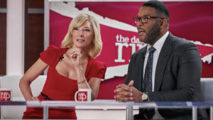 Pour étalonner ces scènes, Wallach a suggéré l’approche suivante : « L’idée que j’ai présentée était de créer un rendu hyper saturé pour les séquences broadcast ; comme si le spectateur traversait un magasin d’électronique rempli de TV dont les images très vives et lumineuses créent une ambiance quelque peu inconfortable. »
